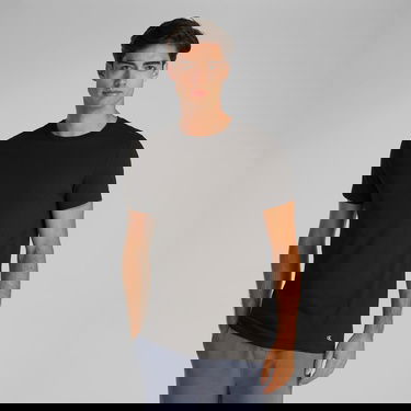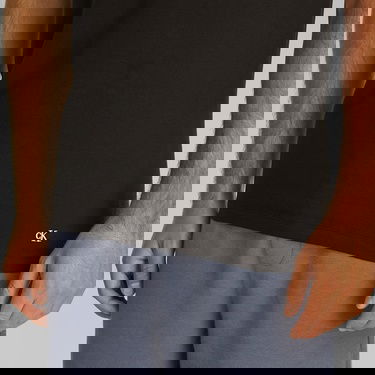 - آرم CALVIN KLEIN در قسمت پایین سمت چپ تی شرت به عنوان حداقل جزئیات قرار دارد.