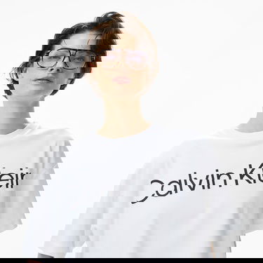 تی شرت سفید زنانه لوگوی زنجیره ای کاکوبی کوتاه شده Calvin Klein