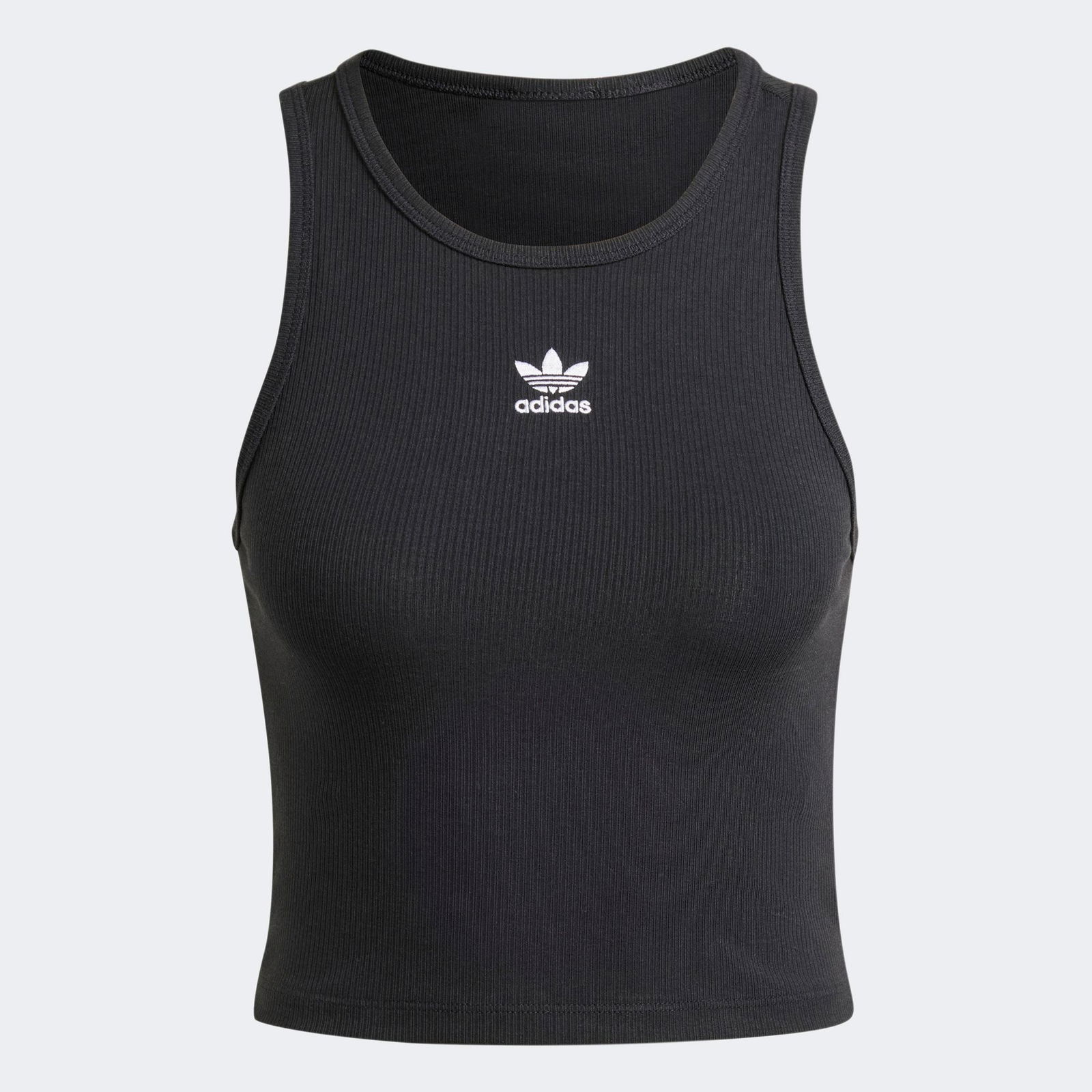 تی شرت بدون آستین مشکی زنانه آدیداس Essentials ریبدار دارای گردن آج