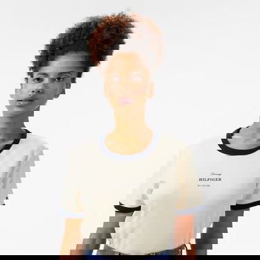 تی شرت بژ زنانه تامی هیلفیگر رگ مونوتیپ نوار C-NK