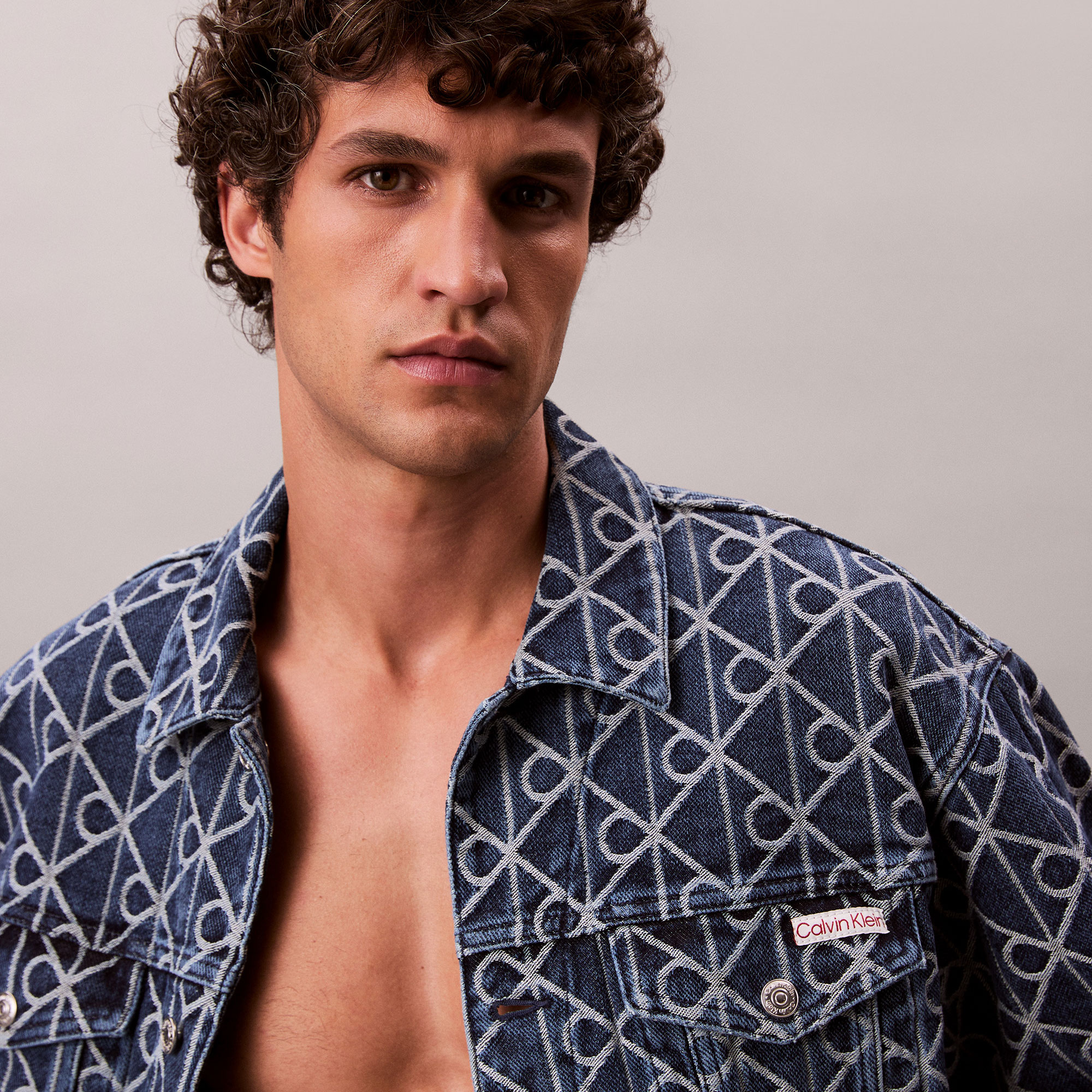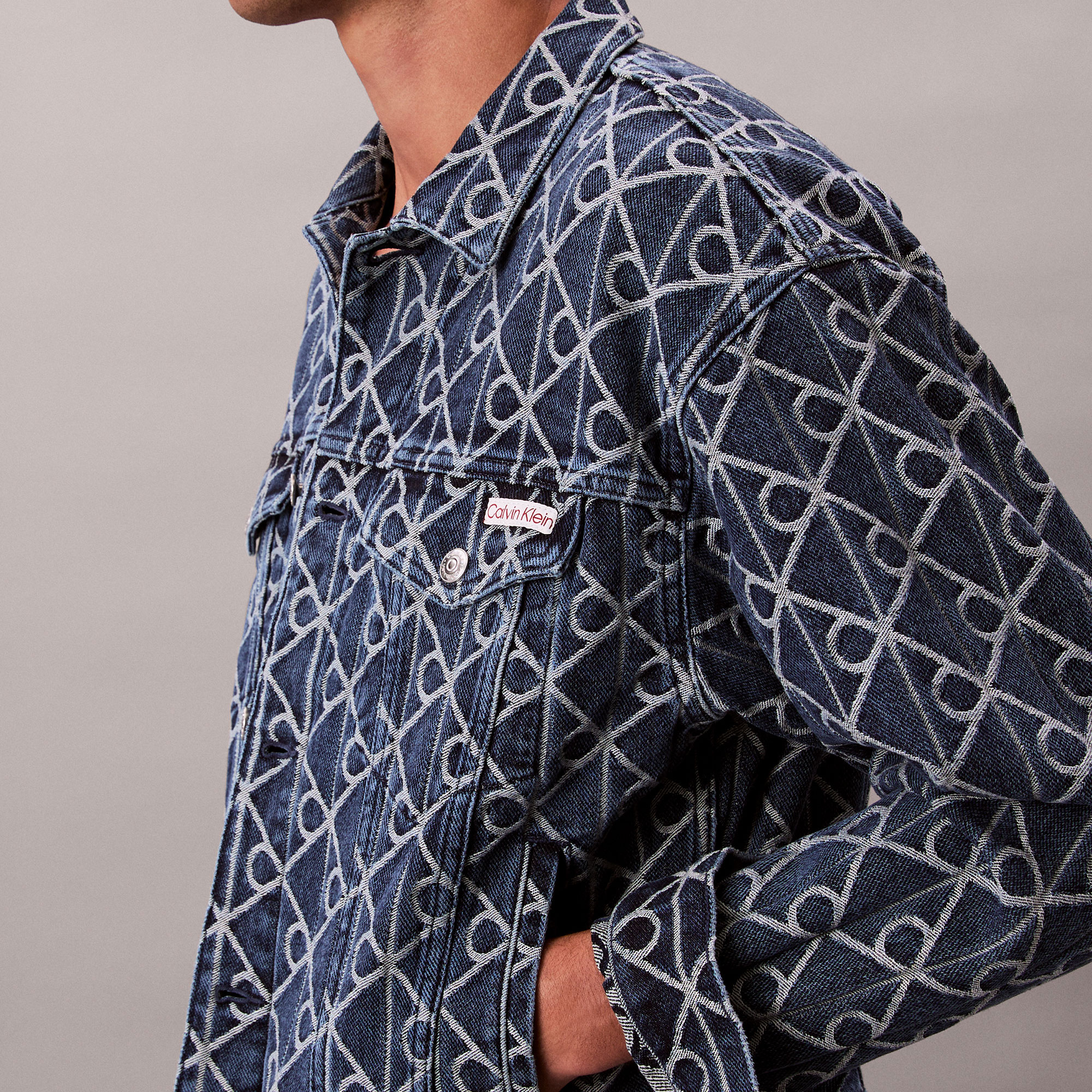 ژاکت آبی مردانه کامیون ژاکارد با نشان نیلی Calvin Klein 90S